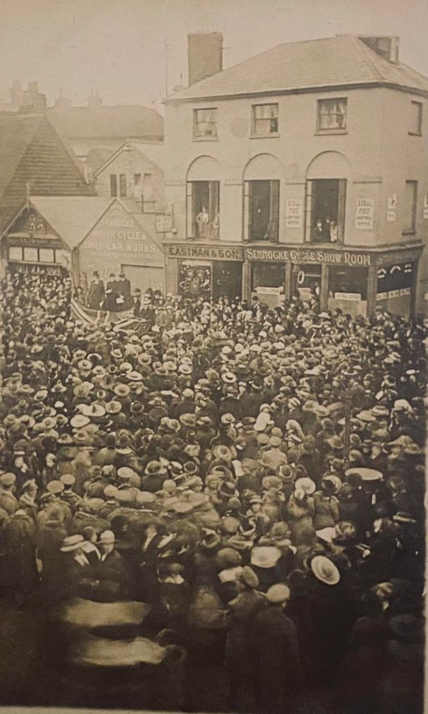 I was really pleased to acquire this postcard showing crowds gathered in the Market Place on hearing news of the Armistice in November 1918. A significant scene from our local history. It is difficult to imagine the mix of emotions those in the crowd would have been feeling after four long years of war.