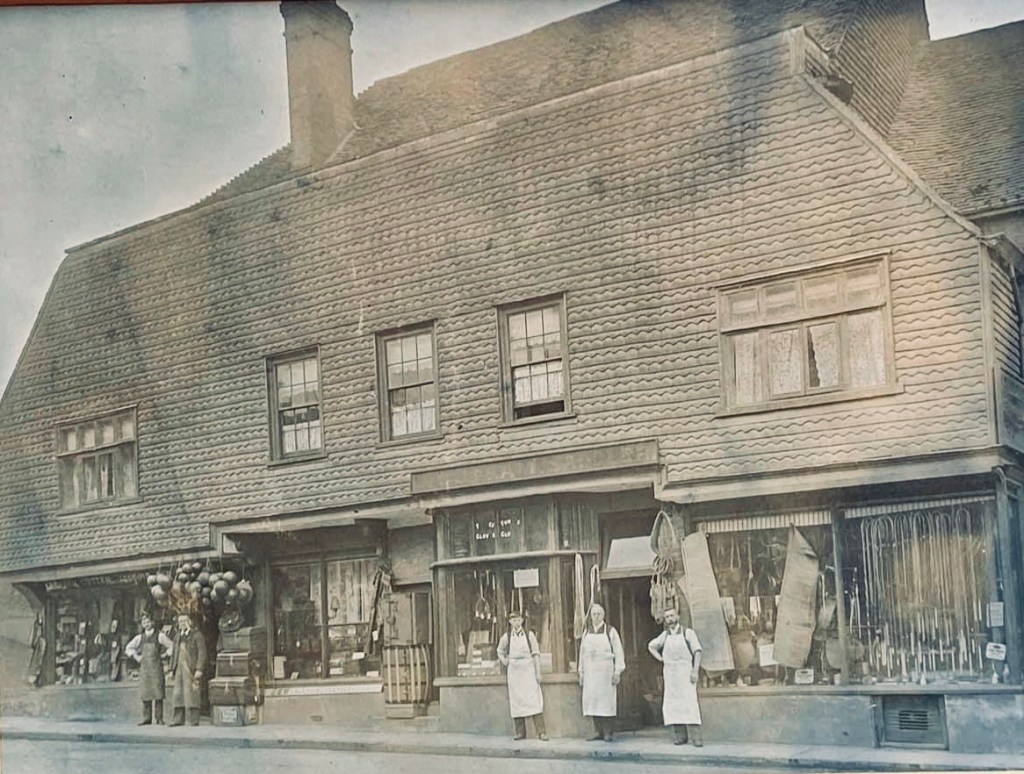 In the centre of the road, opposite 130 High Street, was formerly a well, now arched over. I have heard that there was a tree on each side of it, north and south. There was a pump attached to the well against the wall of Bligh’s Family Hotel. This last is an ancient building. On making some alteration a few years since a girder was discovered bearing the date 1206, but this was unfortunately removed and has been lost.